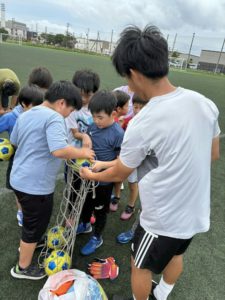 お片付けも、お兄さんたちの姿をみて子ども達も自分も!と、ボールやビブスを集めていました。