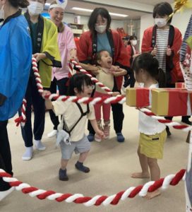 そして後半はみんな集まって、おおきなかぶのエプロンシアター、おみこし、盆踊りをして締めくくりました。