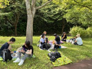 秋らしい青空の下、定山渓ダムの広場でみんなでお弁当を広げてゆったりと過ごし、いざラフティング!!川岸に着くとドキドキした気持ちをみんなそれぞれ伝えてくれました。