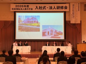 4月1日、入社式に引き続いて社会福祉法人麦の子会の全職員・パート職員が集う「令和8年度 法人研修会」を開催しました。