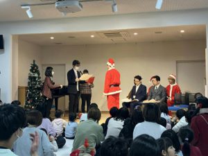 12月24日にクリスマス会がありました。贈呈式では、北海道信用金庫様、北海道新聞厚地販売所様、北海道イシダ株式会社様から子どもたちのためにご寄付をいただきました。