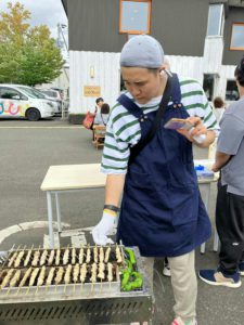 当日は、各事業所の職員と利用者さんが力を合わせて、焼き鳥やスワンのパンを販売しました。お客様を笑顔で迎え、楽しそうに接客する姿がとても印象的でした。