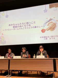 ファミリーホーム「りんごちゃん」(麦の子会)からは、三橋さんが乳幼児を中心とした受け入れの実践が紹介されました。実親と共に子育てを行うケースもあり、赤ちゃんのペースを尊重しながら、保育園や助産師など多職種と連携した支援が行われています。複数の大人の愛情の中でアタッチメントを育てていくことの大切さが共有されました。三橋さんの丁寧で優しいお声で会場が温かい雰囲気に包まれていました。